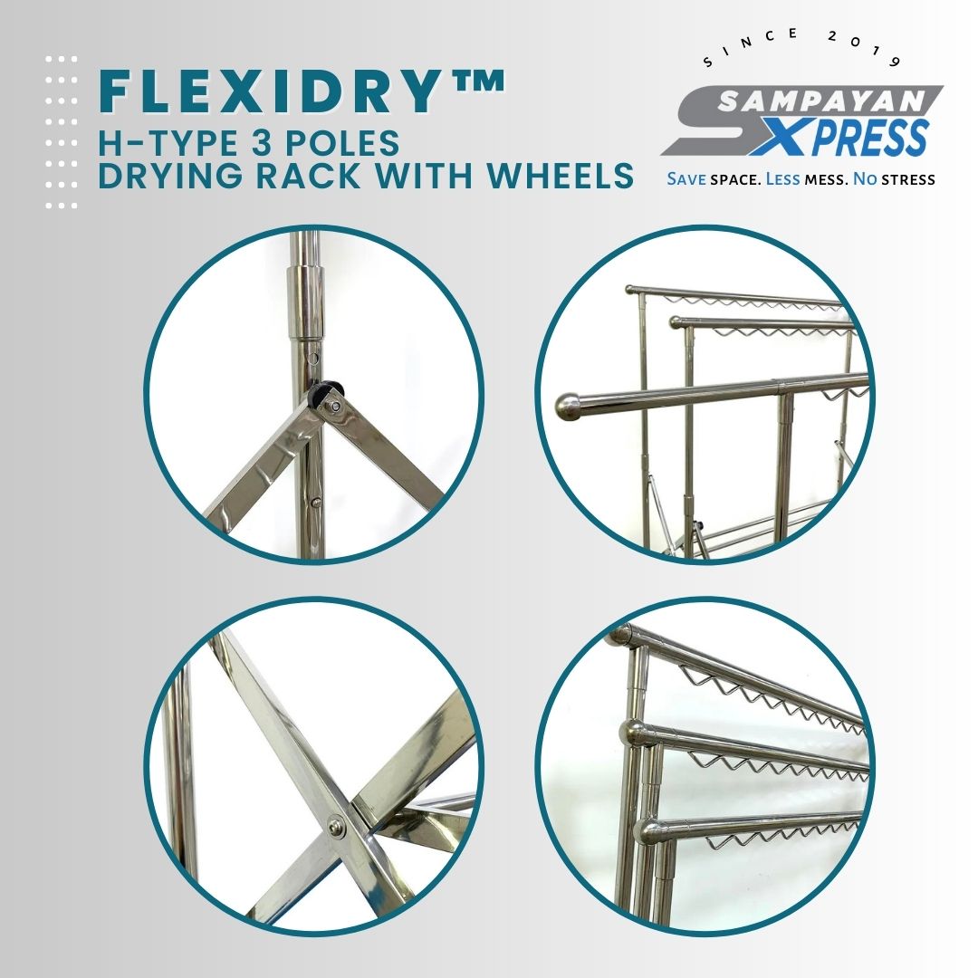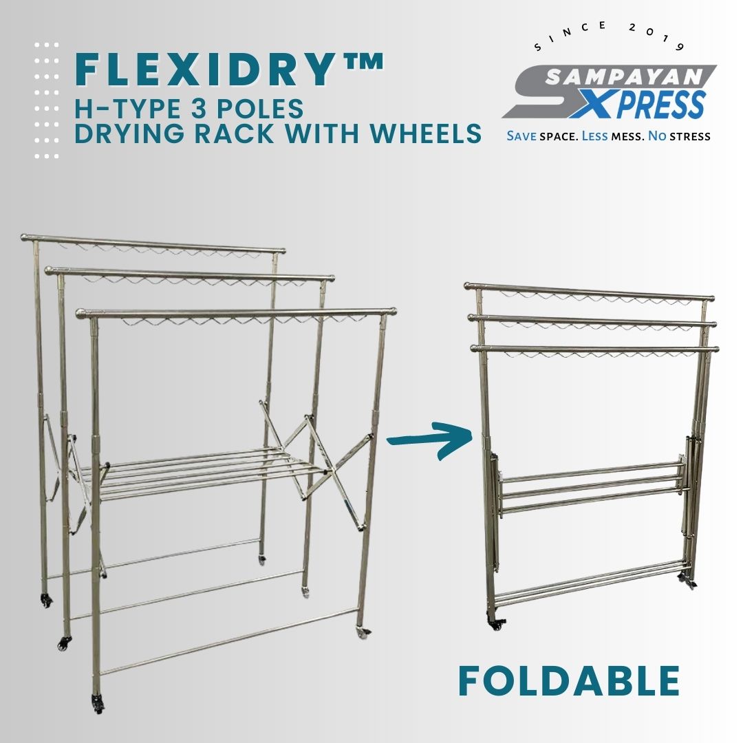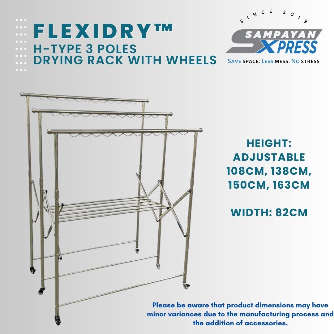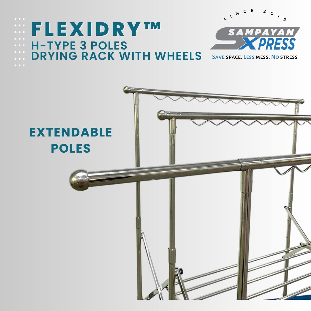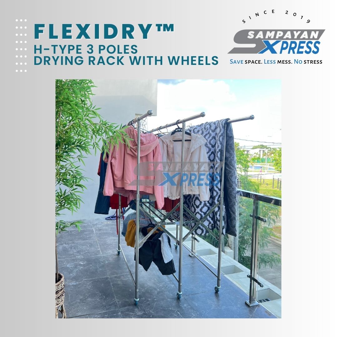 Sampayan Xpress® FlexiDry™ H-Type 3 Poles Stainless Steel Movable Drying Rack with Wheels