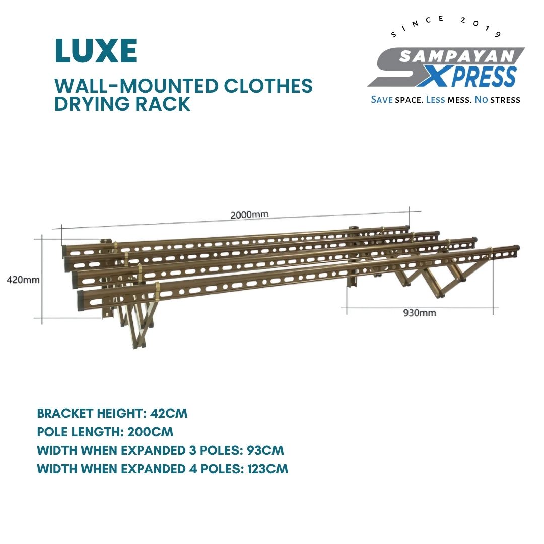 Looking for a stylish, lightweight, yet strong sampayan for your modern home or condo? The Sampayan Xpress® LUXE is a premium wall-mounted retractable drying rack made of aluminum alloy with a champagne finish — giving you both form and function in one smart solution.