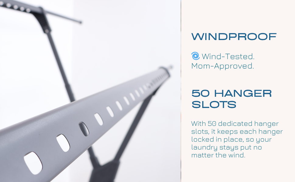 Yes! It has 50 dedicated hanger slots that keep each hanger in place, preventing clothes from being blown away even on windy days.